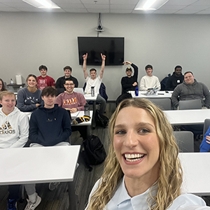 8:55 A.M.: I head down to the classroom where I will teach BUS 109: Business Plan Competition. This class is a staple of Marian’s experiential learning curriculum. It is designed to provide students with a foundation in accounting, entrepreneurship and economics and is nine credit hours. By the end of the semester, the students will have designed, as a group, an original business plan that they pitch to local businesspeople “shark tank” style. It is loads of fun and often full of freshmen.