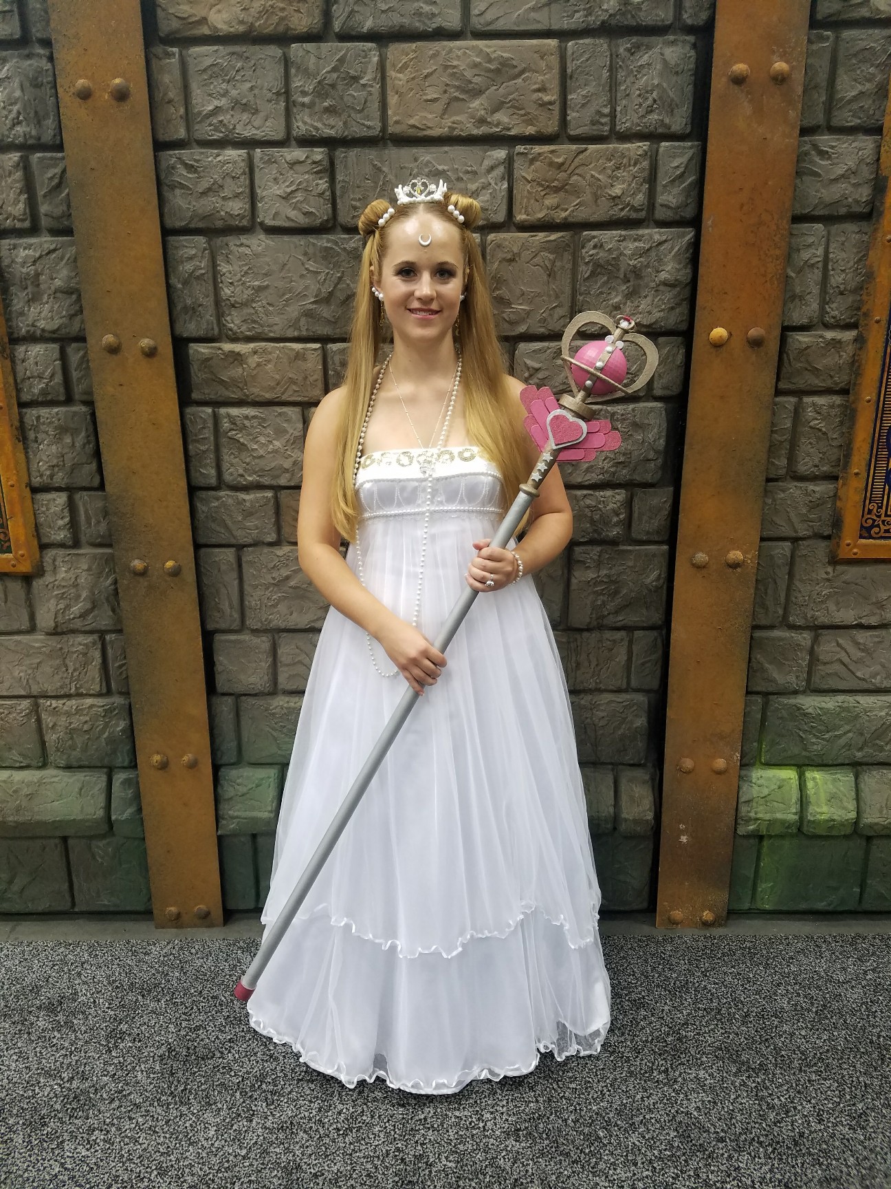 I “cosplayed” Princess Serenity from Sailor Moon, a 90s cartoon, and won the anime Costume Contest at this year’s GenCon. My mom and I handmade the outfit, the staff was made with a friend’s 3D printer, and I made the tiara myself. I received $100 cash, a neat medal, bragging rights, and a four-day ticket to next year’s GenCon.